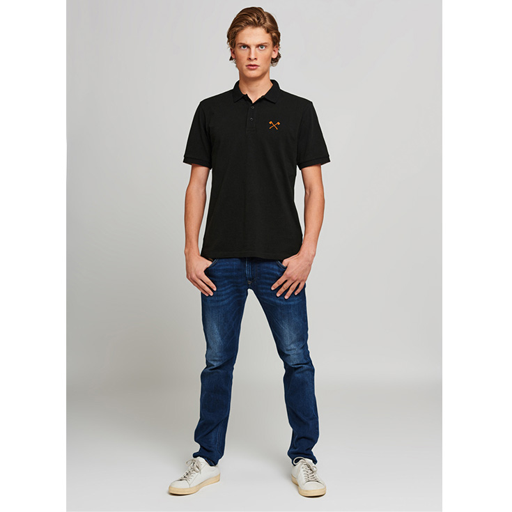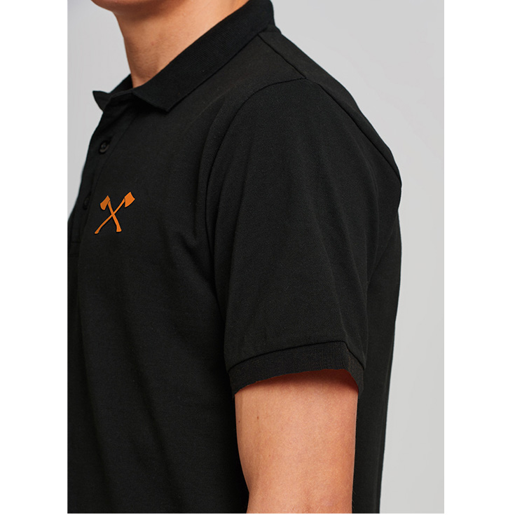 Klasike me një prerje të rregullt: bluzë polo me pambuk të cilësisë së lartë dhe jakë me shirita. Në pjesën e sipërme të gjoksit ndodhen të printuara dy sëpatat e kryqëzuara.