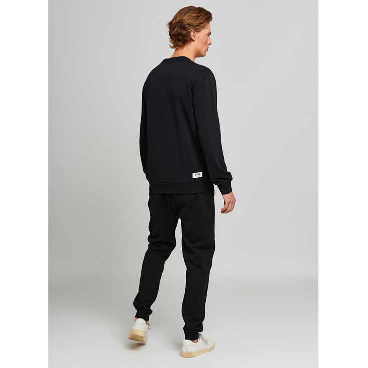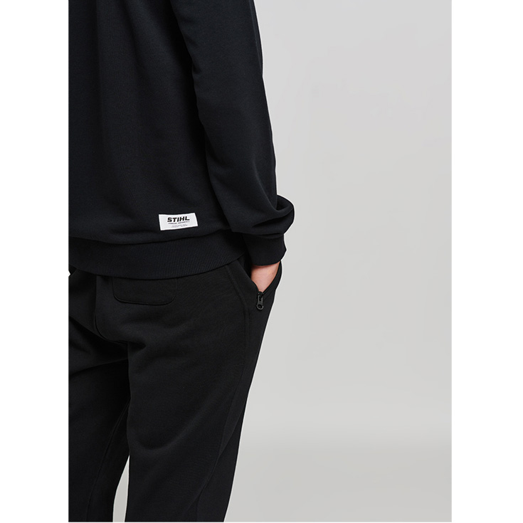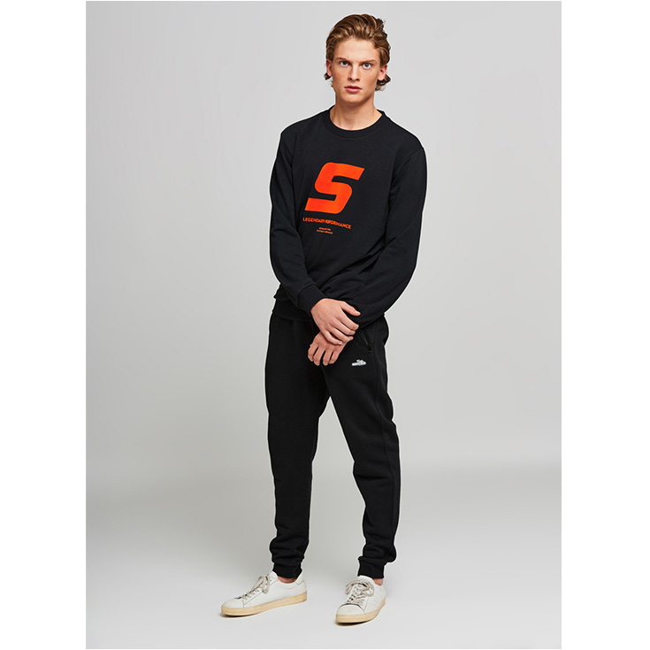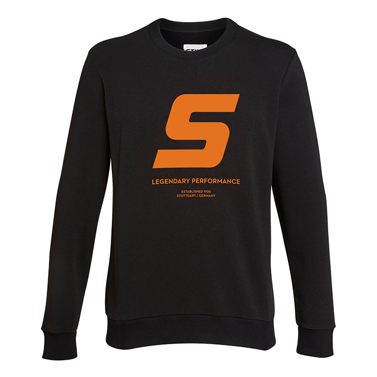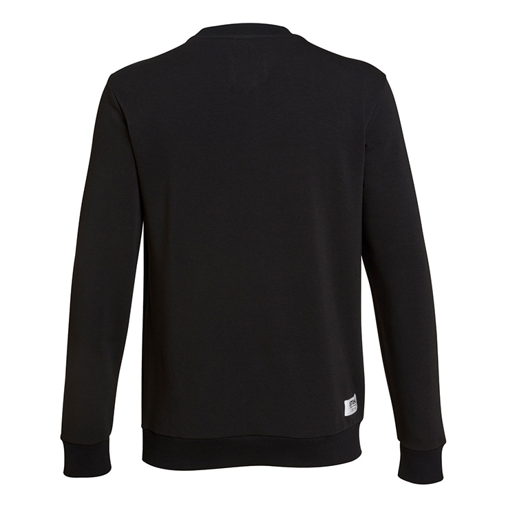 Pulovër e lehtë në formë normale me mëngë të gjera dhe stampim portokalli mbi të zezë. Në pjesën e pasme ndodhet etiketa web karakteristike. Falë materialit me push të ashpër në pjesën e brendshme, është shumë komforte në të veshur.