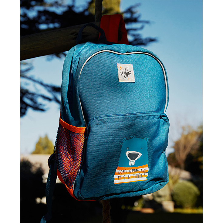 Duke ofruar 7.5 l hapsirë, plus një xhep të jashtëm, kjo çantë ka gjithë hapësirën e nevojshme për të cilën ka nevojë i vogli juaj. Pesha është shpërndarë nëpërmjet rripave, dhe materiali 100% poliester është konform gjithë standardeve të sigurisë – ndërsa logo ” WILD KIDS ” është një detaj që e bën këtë çantë të duket edhe më e veçantë.