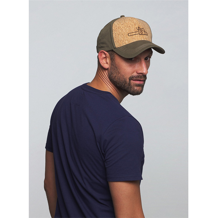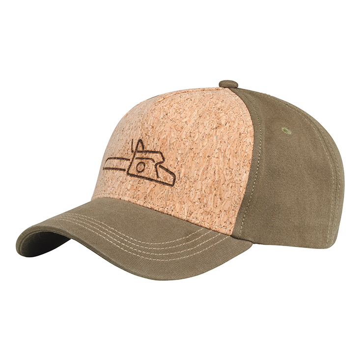 Kapelja jonë e re “CORK” është me të vërtetë e veçantë. E përbërë nga 100% material pambuku me një pjesë të përparme prej tape, ky kombinim materialesh tërheq sigurisht vëmendjen e njerëzve. Qepjet dekorative dhe marka e motosharrës në panelin prej tape e kompletojnë totalisht pamjen. Me kapëse metalike për përshtatje sipas përmasës së kokës.