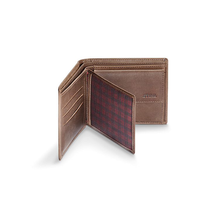 Dizajn i jashtëm kulete, në ngjyrë kafe të errët dhe i përbërë prej lëkure premium. Pjesa e brendshme ka emblemat e fshehura STIHL dhe mbrojtjen e integruar RFID.