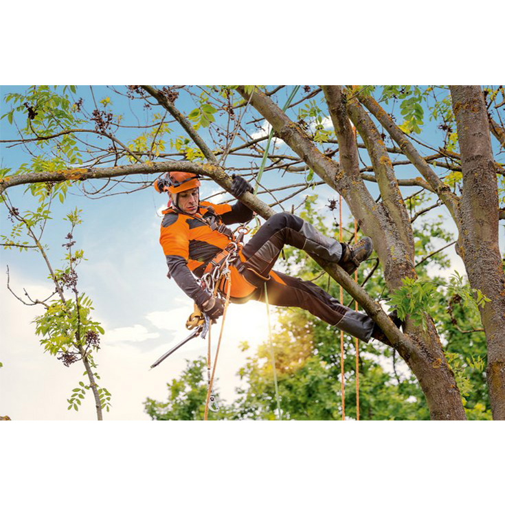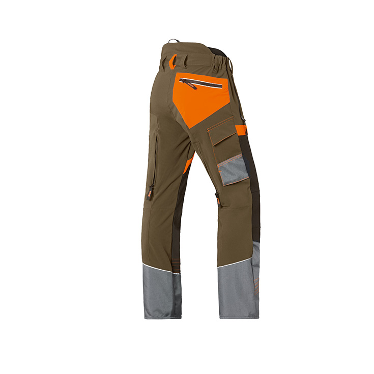 Pantallona të forta për ngjitje, pa mbrojtje ndaj prerjeve. Në ngjyrë kafe, elastike dhe të ajrosshme, të padepërtueshme nga uji në zonat e gjunjve, rezistente ndaj thumbave dhe ujit në zonat e poshtme të këmbëve, rezistente ndaj papastërtive, me hapje ajrosëse me zinxhir në zonën e pasme, mbrojtje të veshkave, grepa për t’iu bashkëvendosur lidhëseve të këpucëve, xhepa të mbyllshëm dhe zona me refleks.