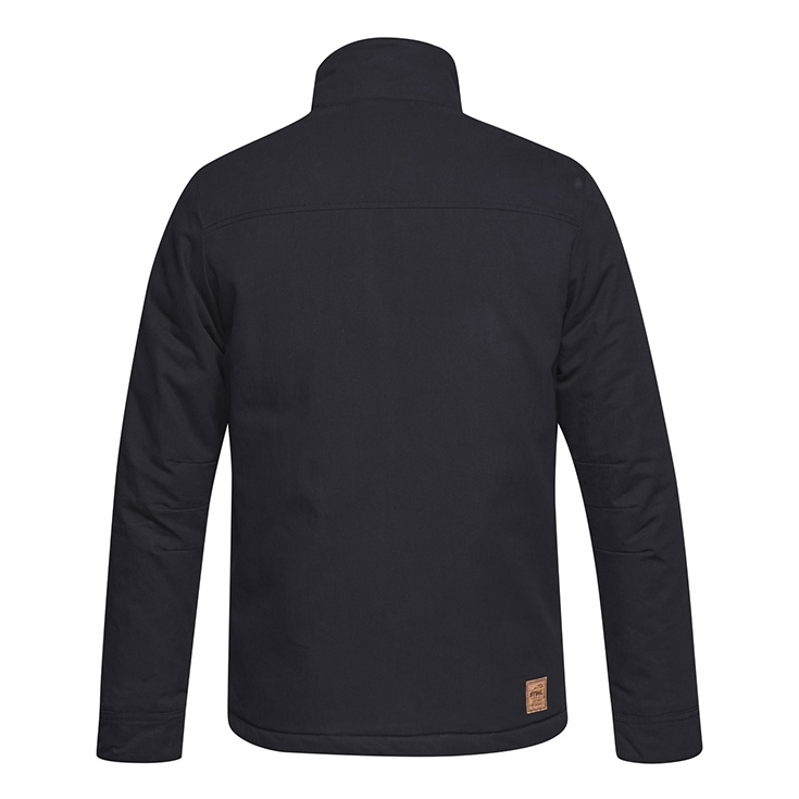 Një xhaketë e cila nuk ju mban thjesht ngrohtë, por duket shumë bukur gjithashtu. Xhaketa jonë në ngjyrë gri të errët përdor si kamuflazh motosharrën jeshile për shiritat e brendshëm, ka një jakë të ngritur, si edhe vlerëson detajet praktike dhe funksionale. Është e pajisur me një zinxhir të fshehur, dy xhepa në pjesën e kraharorit, dy xhepa anësorë, si edhe një pjesë të zgjatur në zonën e pasme, gjë që e bën këtë xhaketë ideale për ambientet e jashtme. Kompletohet me detaje diskrete, si motivi i motosharrës në zonën e majtë të kraharorit dhe distintiktivi prej tape në pjesën e pasme.