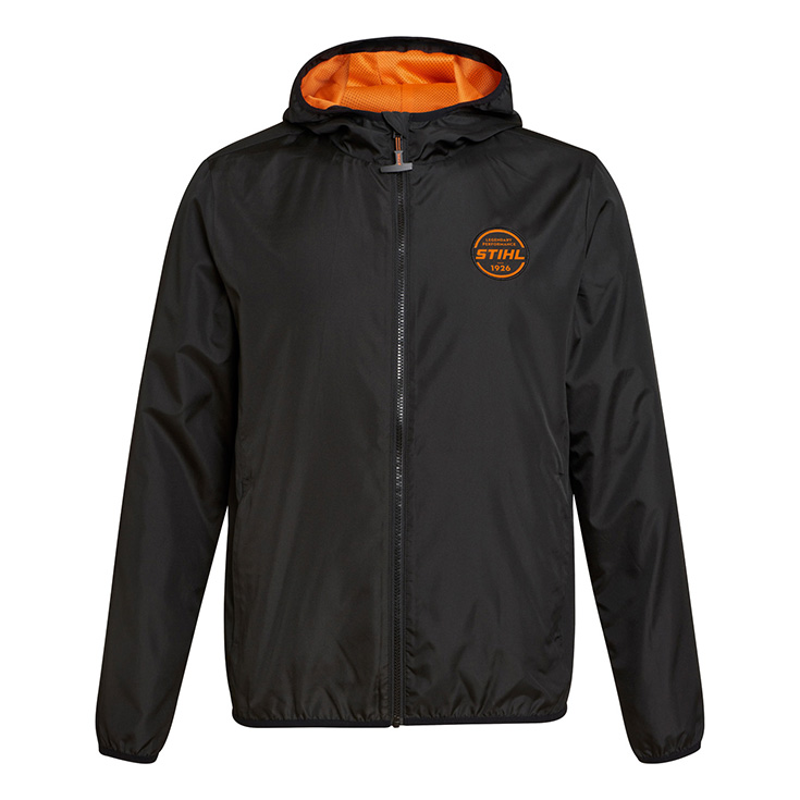 Xhaketë sportive me kapuç, kundër erës, dhe me logo portokalli STIHL të një cilësie të lartë në pjesën e gjoksit. Me shtresë rrjete me kontrast të dallueshëm, në ngjyrë portokalli të ndezur. Qepjet elastike në mëngë ofrojnë rehati maksimale në të veshur, si edhe ka xhepa me zinxhir në anë.