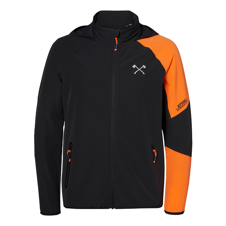E papërshkrueshme nga pluhuri dhe nga era! Shoqëruesi perfekt ne aktivitete sportive dhe në kohën e lirë. Kundër erës, ajroset dhe thahet lehtësisht. Kontrasti që ofrojnë mëngët me shirita në ngjyrë portokalli, sëpatat e kryqëzuara me reflekse në pjesën e kraharorit dhe logo e STIHL e stampuar në pjesën e pasme, e bëjnë këtë veshje unike. Kapuçi dhe jaka e ngritur prej materiali elastik, bashkë me xhepat anësorë me zinxhirë e kompletojnë pamjen e kësaj bluze.