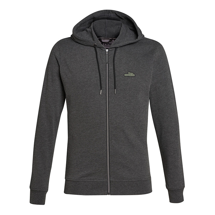 Xhaketë sportive e rehatshme, e përsosur si veshje për mbrojtjen nga djersitja. Vjen si masë e rregullt, ka zinxhir dhe kapuç me rripa. Në pjesën e gjoksit ndodhet stampa ikonike e motosharrës, në ngjyrë ulliri. Ndërsa në pjesën e pasme poshtë ndodhet etiketa prej tape.